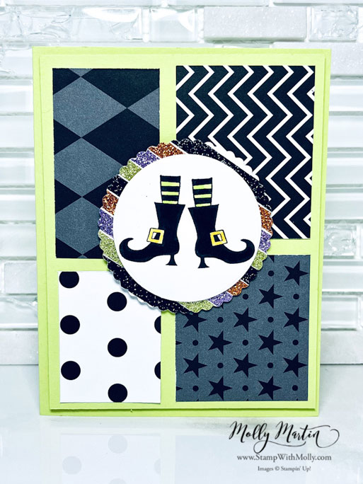 How cute is this card? The feet in this stamp set remind me of the “Wizard of Oz” a little. I was going to leave the socks black and white, but I thought they needed a little color to them. The glitter washi tape even added just a bit more color and some dazzle to this card.