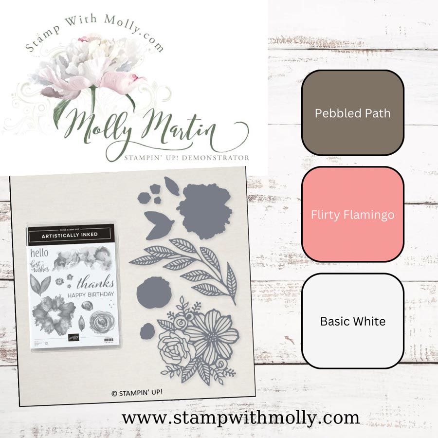 It has been a fun week sharing the Artistically Inked Stamp Set & Artistic Dies from the Stampin’ Up! Annual Catalog. And today is the 5th day of sharing my weekly showcase with you. I have a treat! A FREE PDF of this card (scroll down to find).