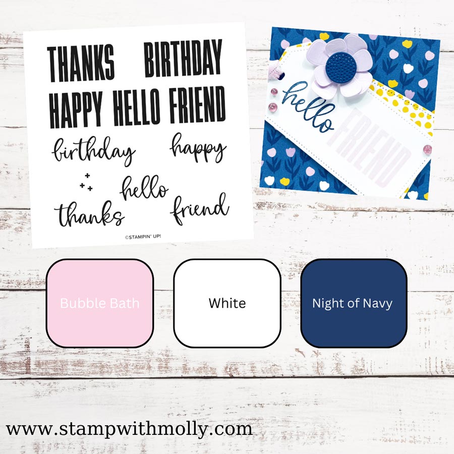 This week, I am using the Stampin’ Up! Biggest Wish stamp set. I found it easy to create this week’s cards. Today’s card is great to send to a friend and let them know you are thinking about them.