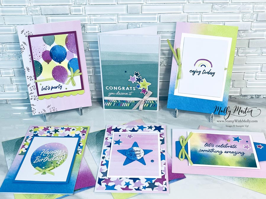 These 6 cards were created simply using the Bright & Beautiful Memories and More Card Pack with the Bright & Beautiful Memories & More Cards & Envelopes. I stamped some confetti on one card, but it was unnecessary. The Cards & Envelopes have 20 card bases with 20 envelopes, and there is still plenty left over in the card pack that you can make 20 cards and still have leftovers from the card pack!