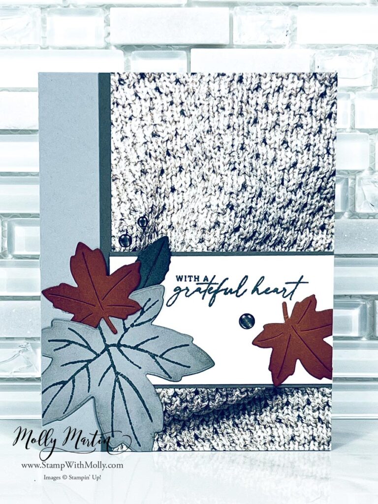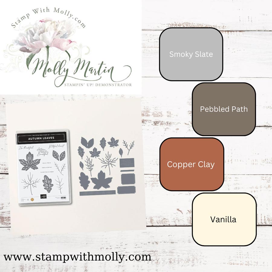 Is it me, or does this card speak Fall? The leaves make me visualize the actual leaves on the ground. The new In-Colors Pebbled Path & Copper Clay stand out in this card.