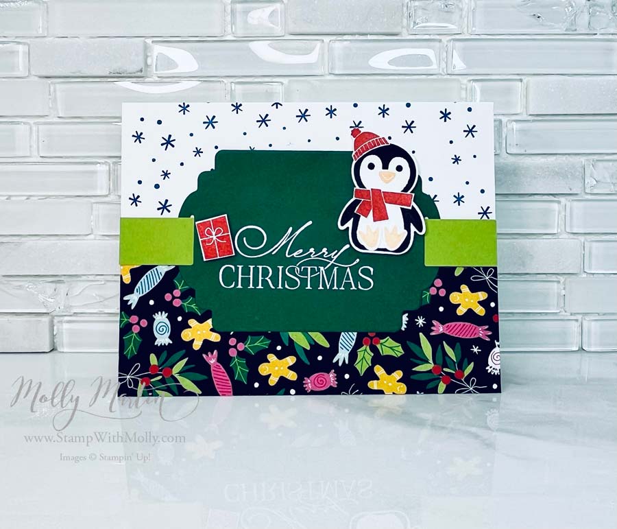 This week I am featuring Stampin’ Up! The Penguin Place Stamp Set & Penguin Punch. Today’s card is one I created using stamp set and punch from the card kit to go!
