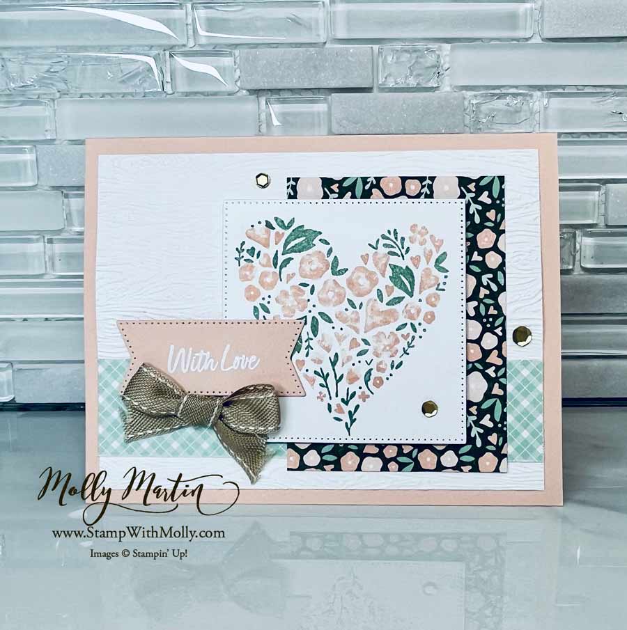 This week I am featuring Stampin’ Up! new Suite in the New Mini Catalog is the Country Bouquet Suite. Today I just wanted to show you a card that I created with the items from the suite. You will be able to make some cute Valentine’s and Love cards!