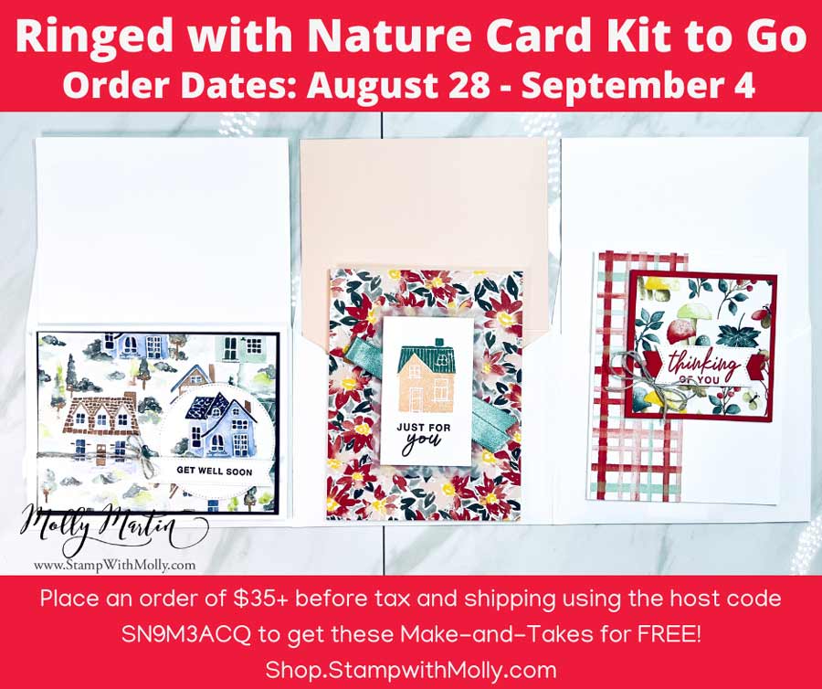 For this week’s projects, you’ll need the Ringed With Nature Stamp Set, inks, markers, and adhesives to complete the projects (see recommended items below). I don’t send any pre-stamped images per the Stampin’ Up! policy. You can substitute the items listed for supplies you already own as well.