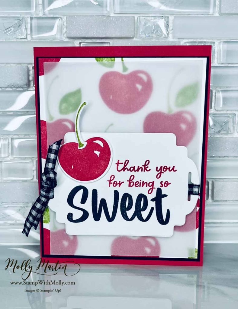 For this week’s projects, you’ll need the Sweetest Cherries Bundle, inks, and adhesives to complete the projects (see recommended items below). I don’t send any pre-stamped images per the Stampin’ Up! policy. Please feel free to substitute the items listed for supplies you already own.