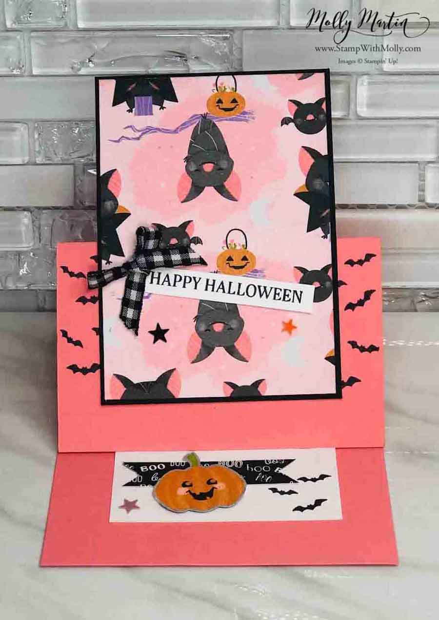 I think my favorite design on the designer series paper is the cute little bats! I did a fun fold card using this paper.